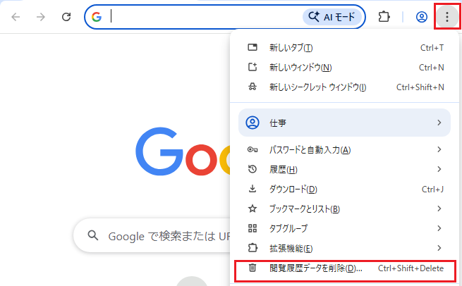 表示されたメニューの[履歴データを削除]をクリックします。