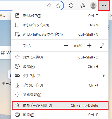 ブラウザ右上の[・・・]をクリックします。