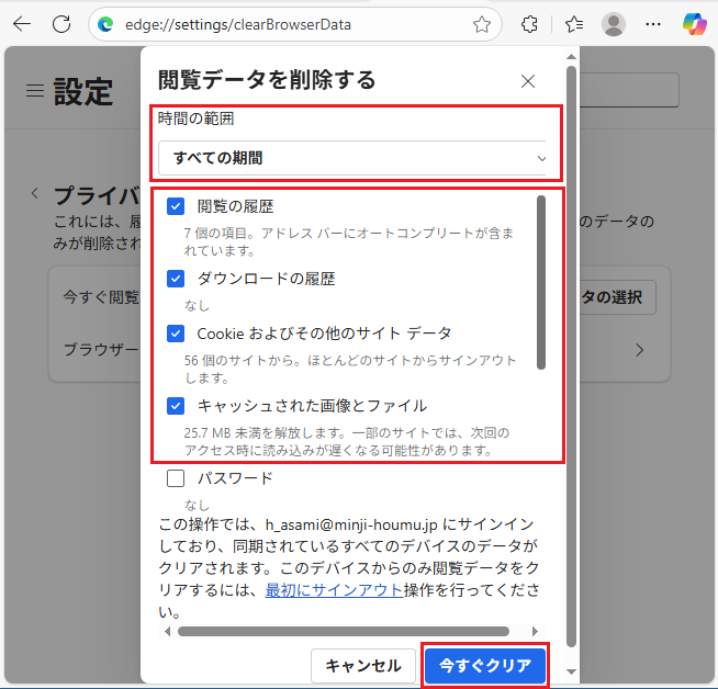 - [今すぐクリア]ボタンをクリックします。